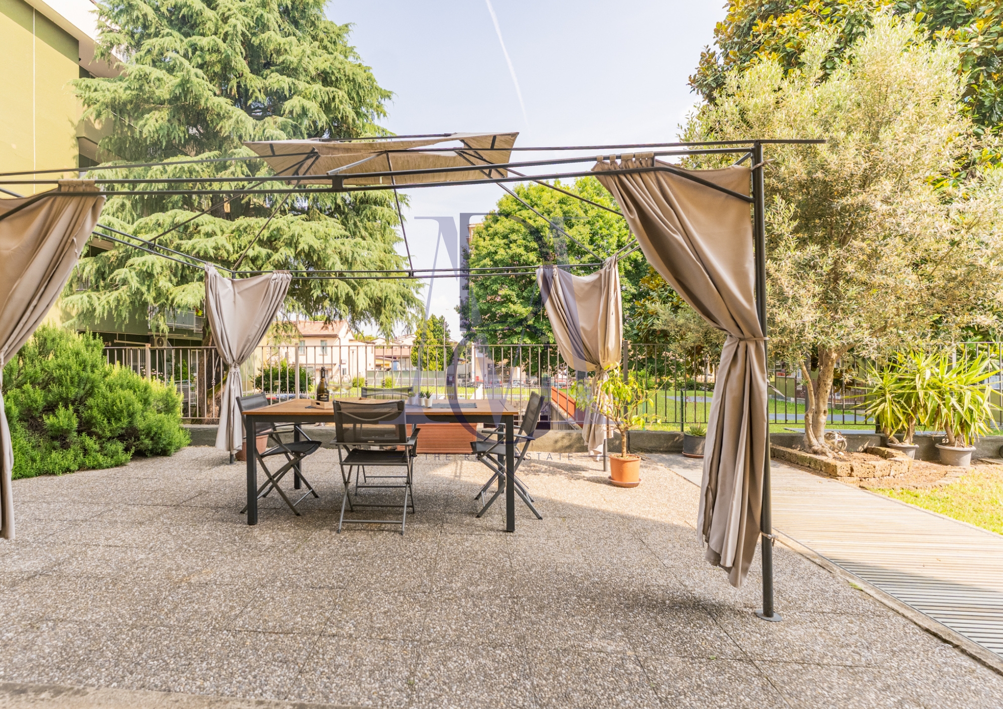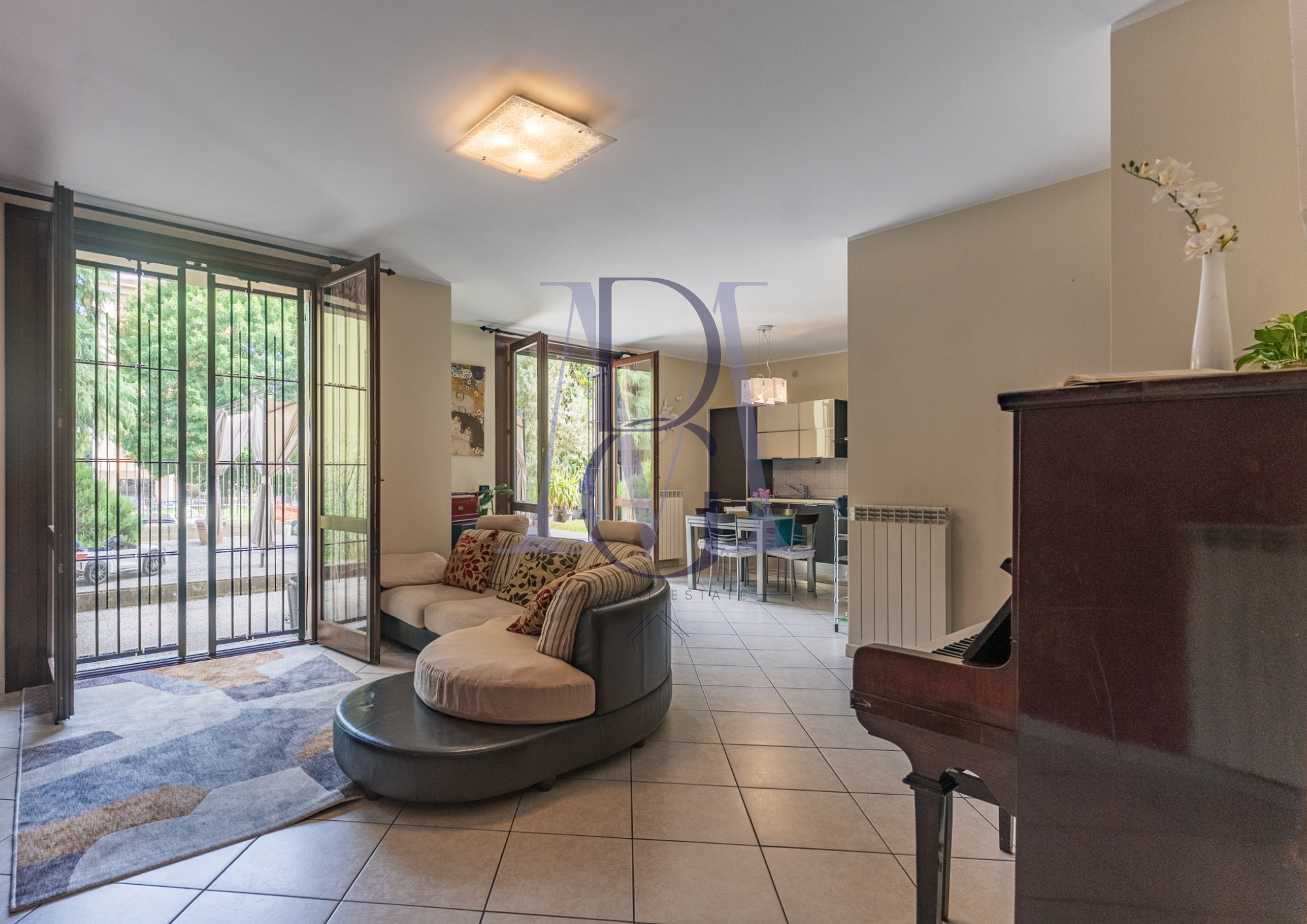 L’appartamento è un ampio trilocale di circa 111 mq situato al piano terra di una moderna palazzina del 2002 in perfette condizioni. Dall’ingresso, l’immobile ci accoglie in una ampia zona giorno con cucina a vista, ambiente nel quale fa da padrona la notevole luminosità e l’accesso al giardino che circonda l’appartamento su tre lati. Accedendo alla zona esterna dal soggiorno/cucina incontriamo una prima parte pavimentata perfetta per pranzi, aperitivi e cene all’aria aperta o semplicemente per godersi dei momenti di relax. Il giardino si sviluppa sui tre lati dell’immobile consentendo una piacevole vista da tutte le finestre.