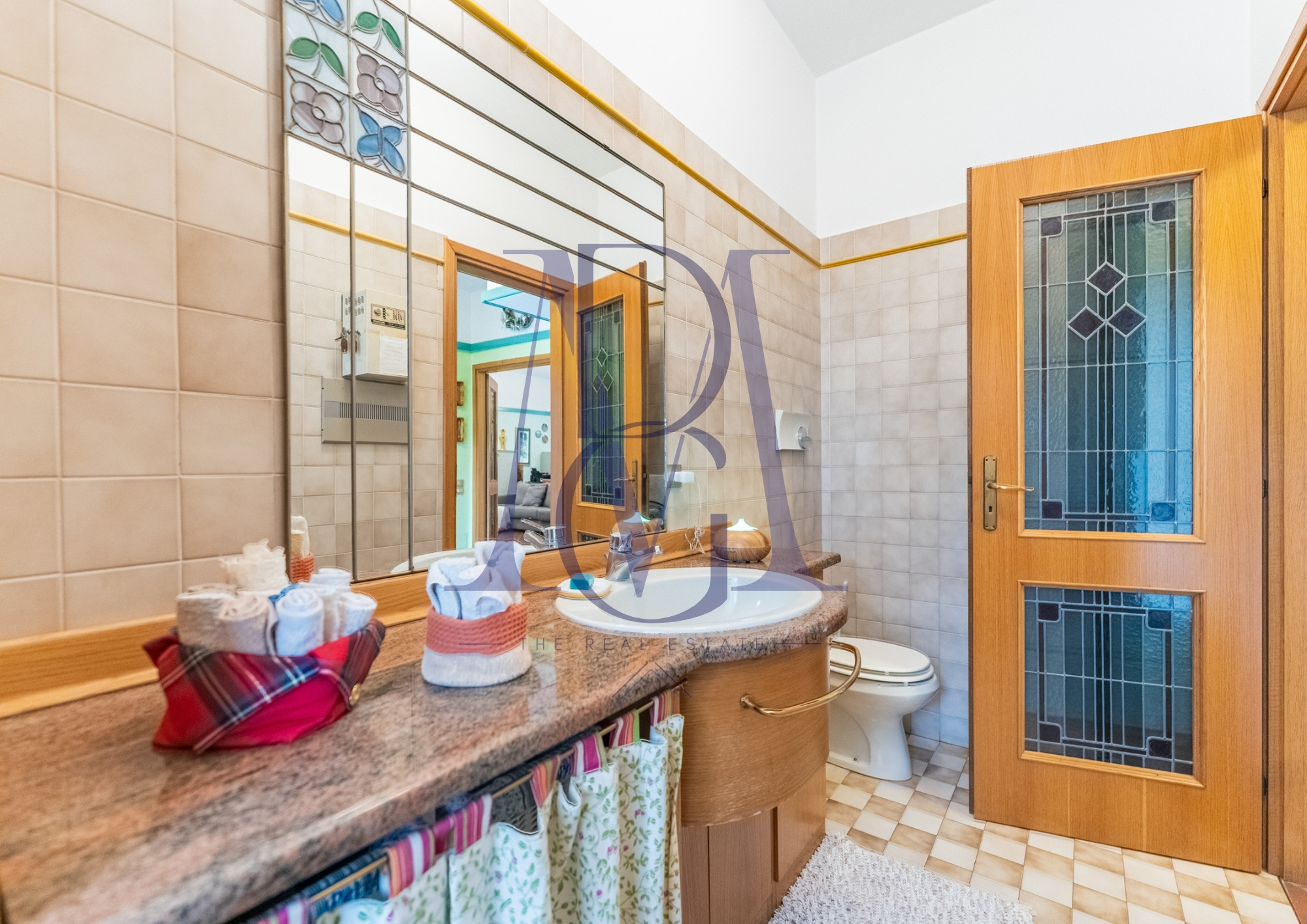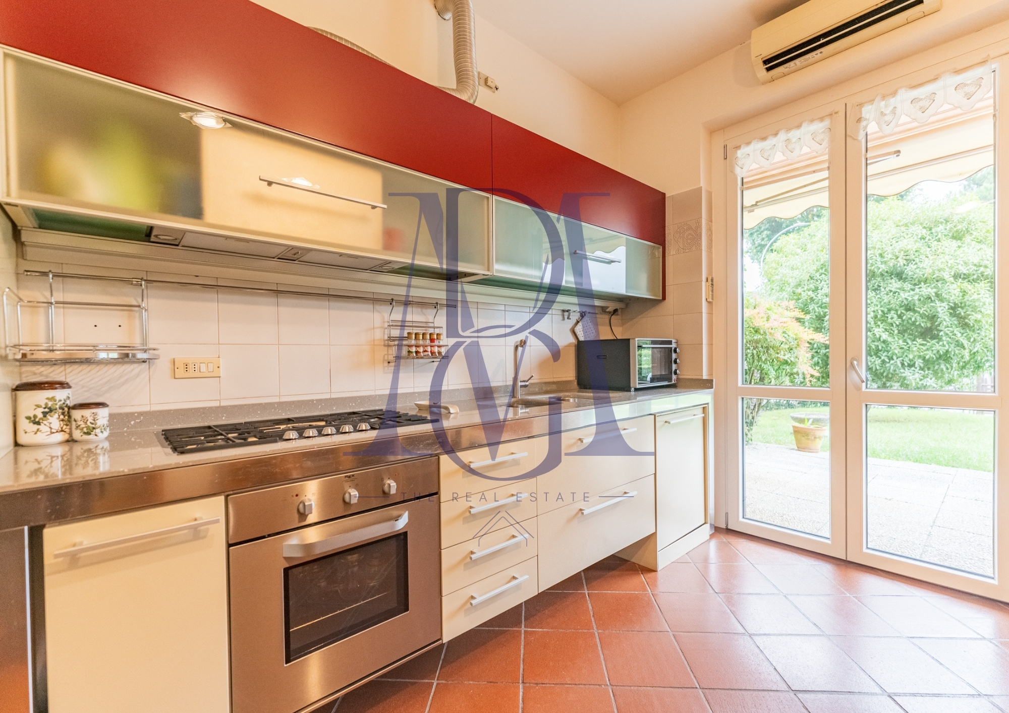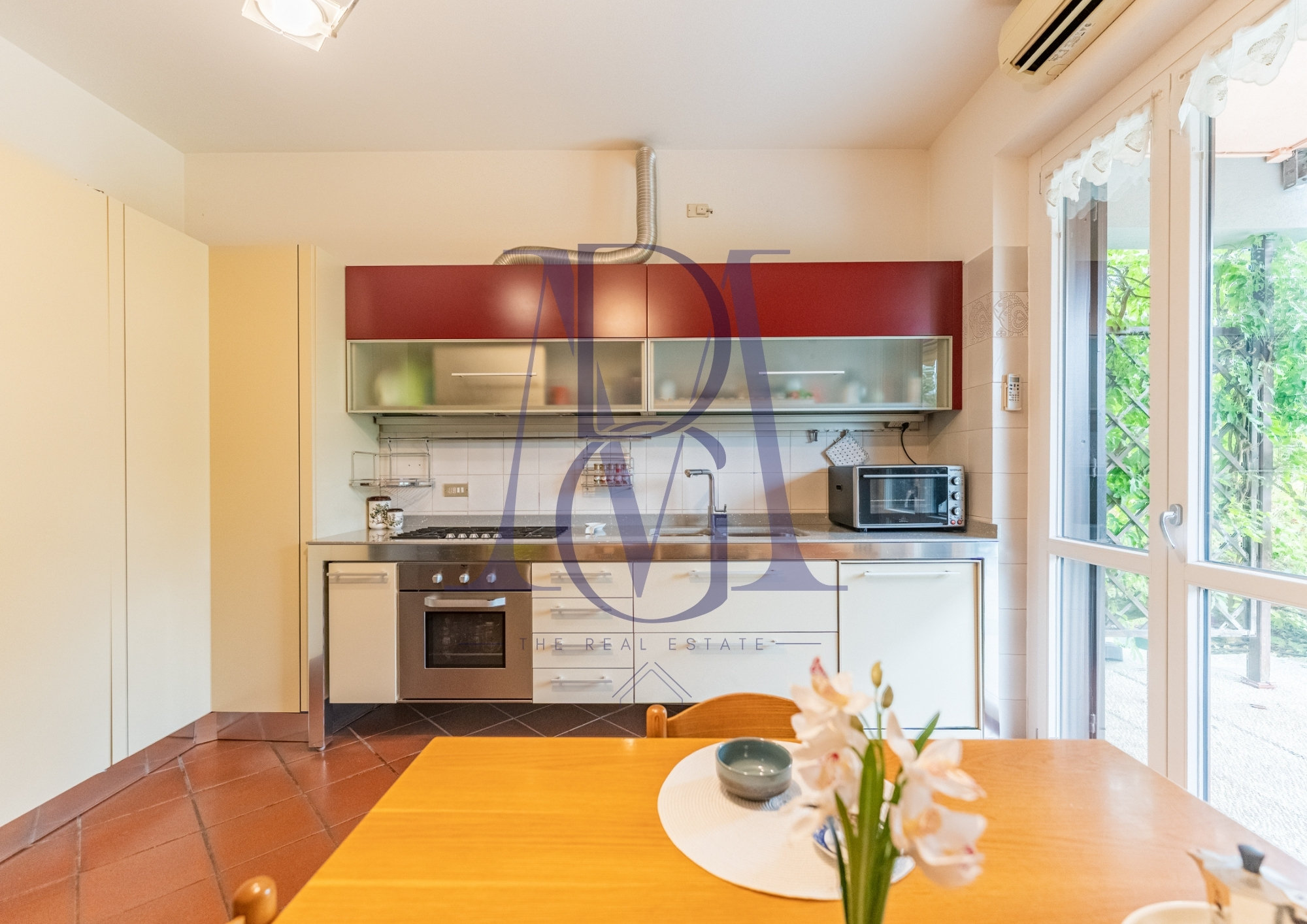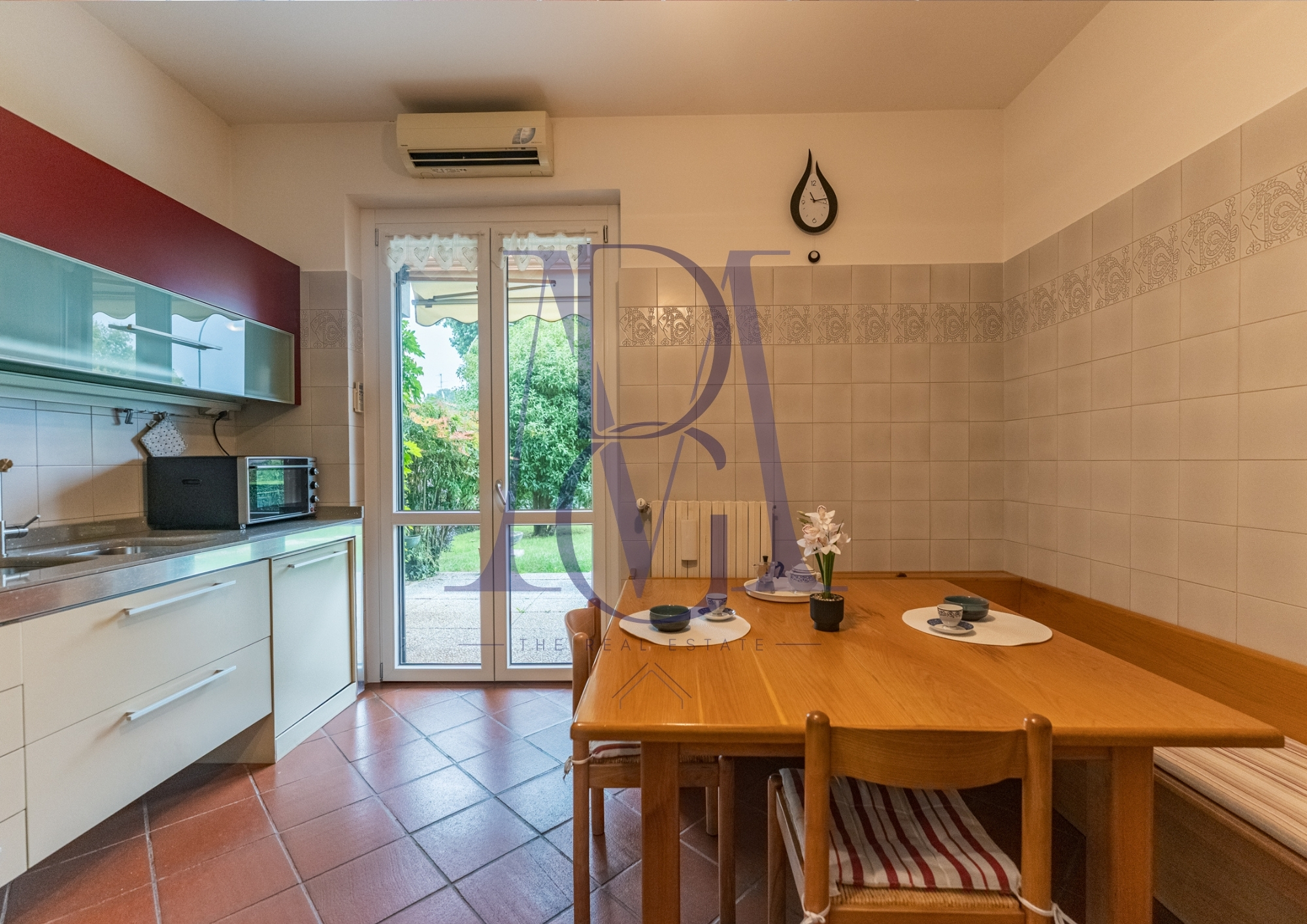 Al piano terra troviamo anche una cucina ampia e abitabile, un ambiente ideale per la famiglia, con una splendida porta finestra che si affaccia direttamente sul giardino.