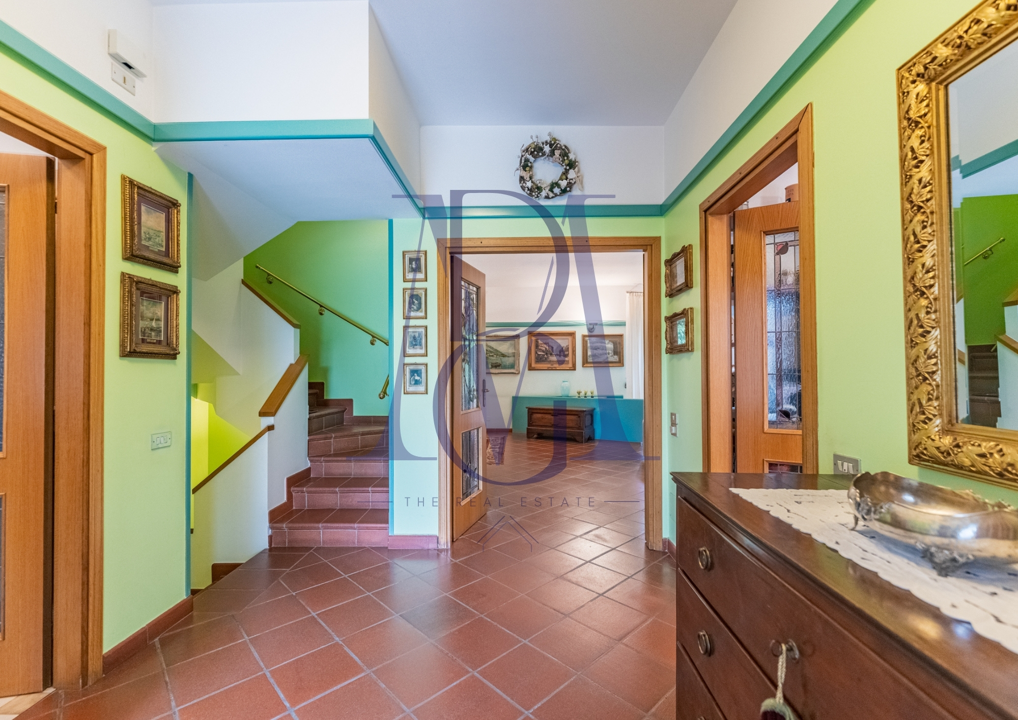 Il porticato che precede l’ingresso è perfetto per godersi pranzi e cene all’aperto. Entrando, sarai subito avvolto dalla straordinaria divisione degli spazi interni e dalla luce. Infatti, la luce inonda il soggiorno doppio di generose dimensioni, grazie alle due porte finestre che conducono al balcone. Qui, inoltre, il calore del camino angolare funzionante crea l’atmosfera ideale per le serate d’inverno.