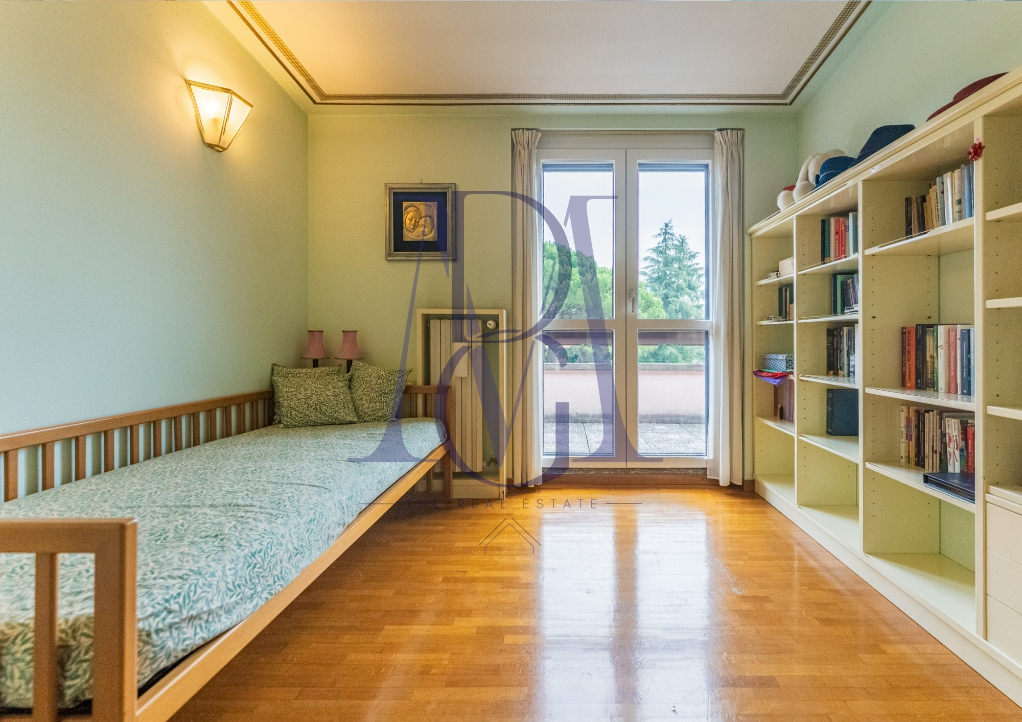 In aggiunta, la zona notte è affiancata da due bagni finestrati (uno con vasca e uno con doccia), che garantiscono privacy e funzionalità.